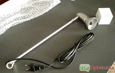 Lampa o mocy 50W zaprojektowana Specjalnie do ROLLUP ów w kolorze srebrnym, umieszcza się ją na szczycie słupka podtrzymującego grafikę wciskając na końcówkę słupka.