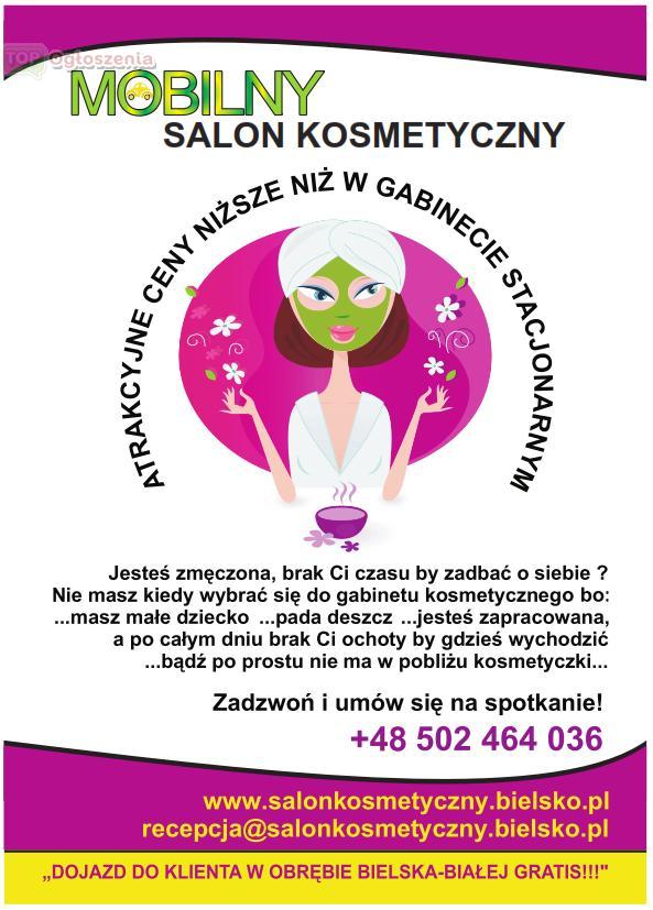 Zakres moich usług obejmuje pielęgnację twarzy, ciała, dłoni i stóp z wykorzystaniem specjalistycznego sprzętu i profesjonalnych preparatów kosmetycznych Bielenda. Przebieg zabiegów kosmetycznych, jak również ich efektywność niczym nie ustępuje zabiegom przeprowadzanym w renomowanych salonach. Różnica polega tylko na tym, że to ja dojeżdżam na wskazany adres, a Państwo macie więcej czasu dla siebie.